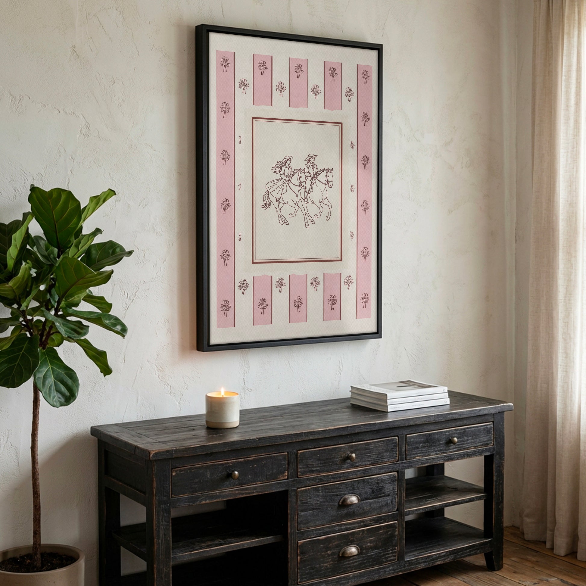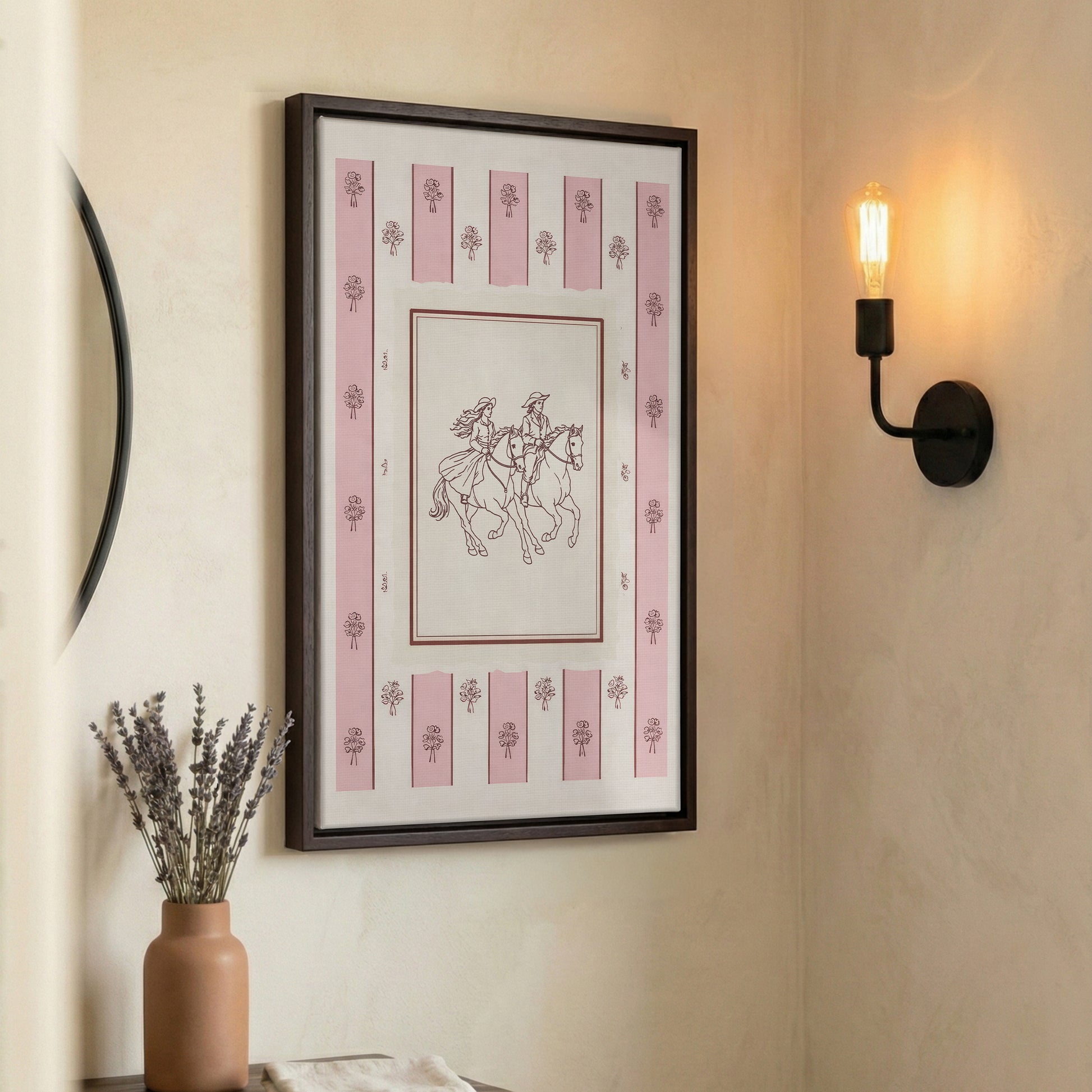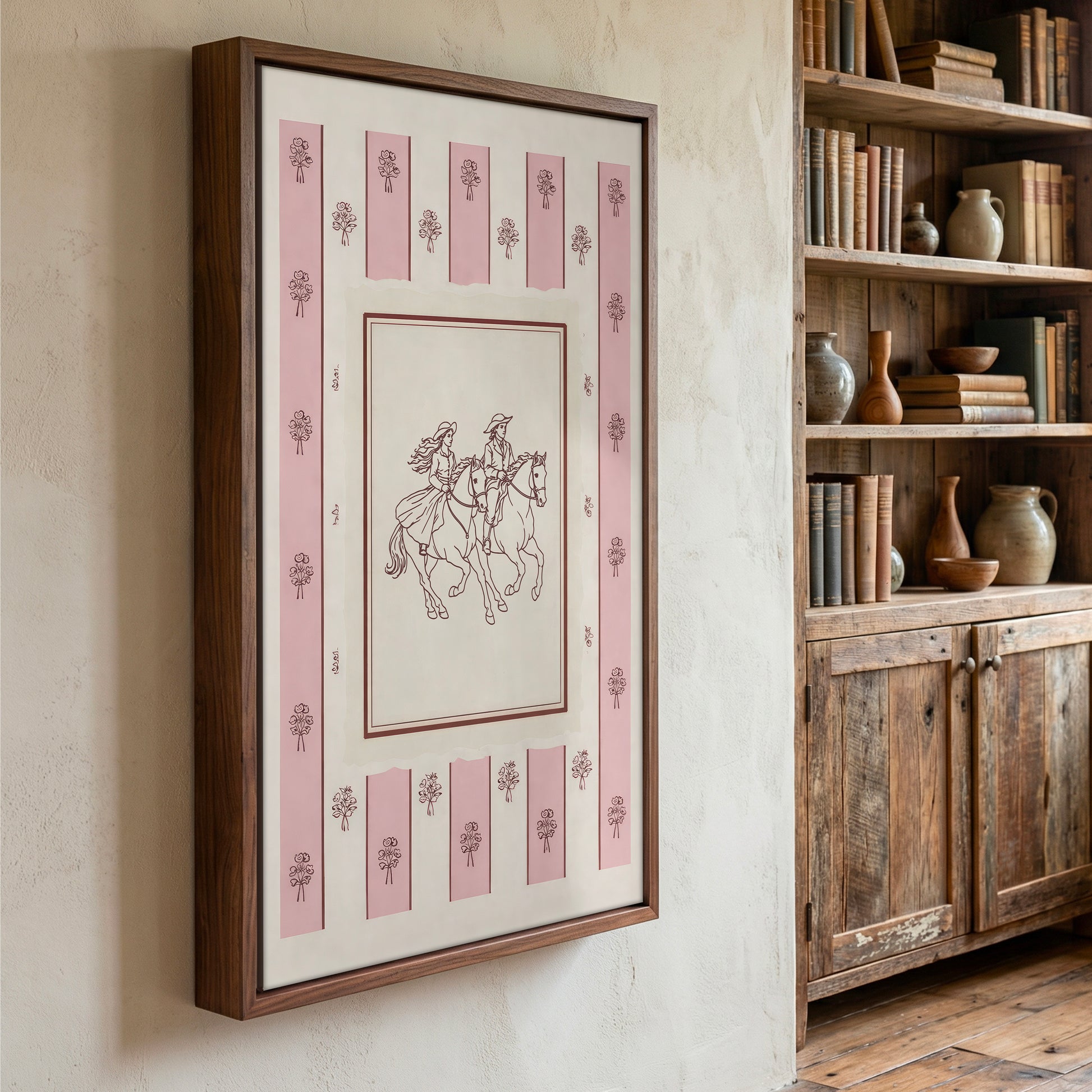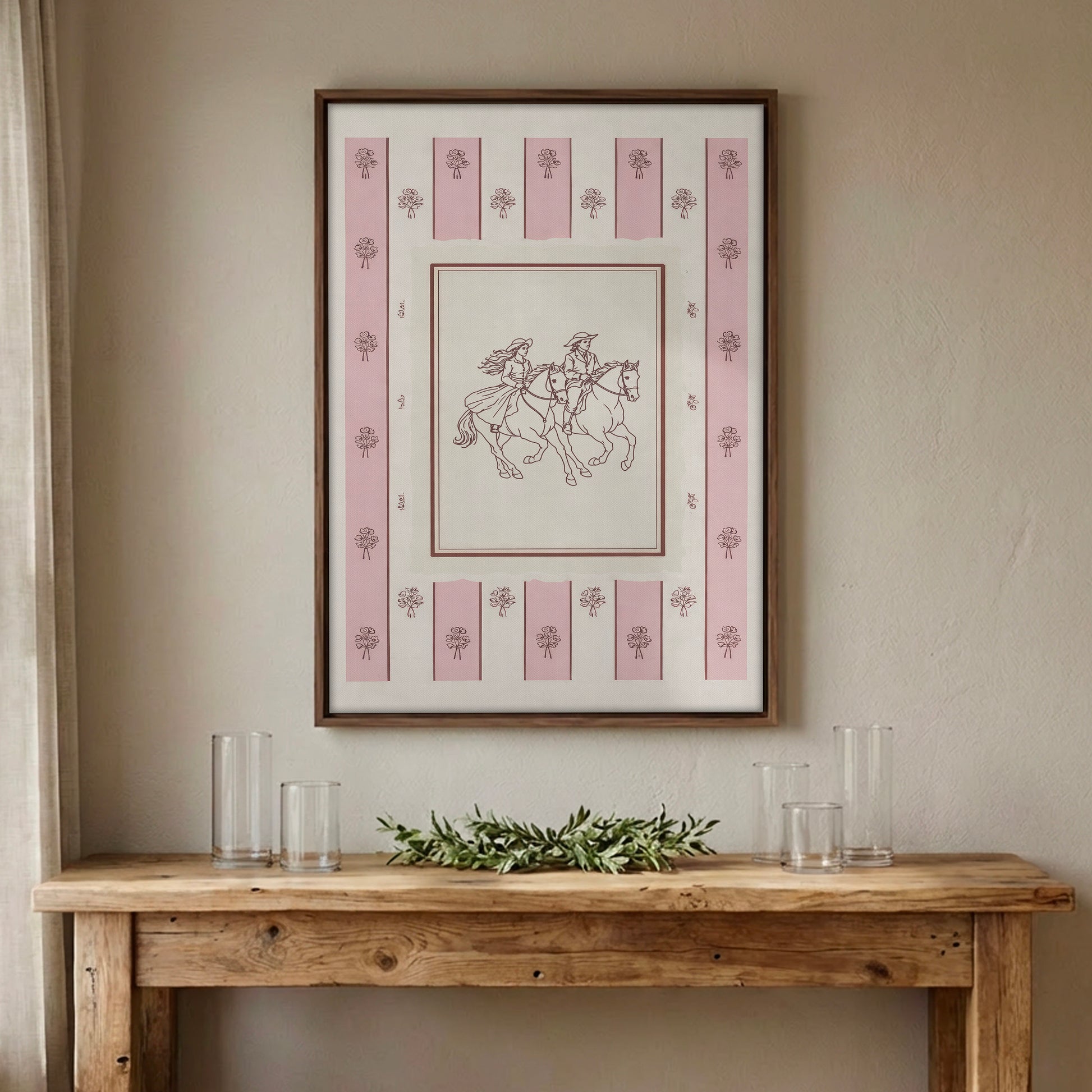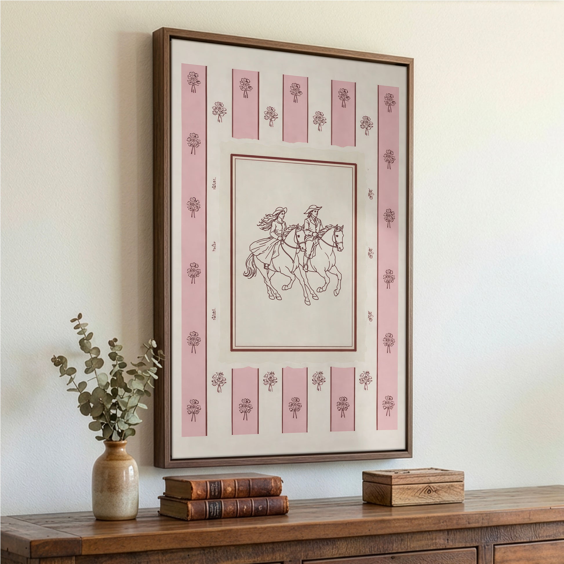 Soft pink florals meet old-fashioned romance. A vintage-inspired line drawing that belongs in every country girl's bedroom or bridal suite.